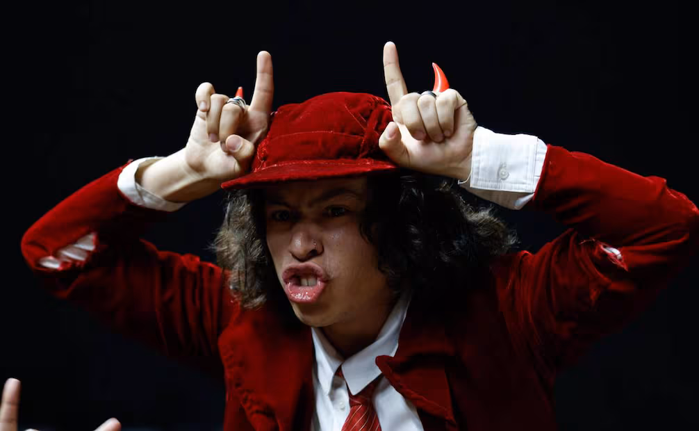 Un paseo con AC/DC evidentemente no podía estar completo sin recorrer la “Highway to Hell”, misma que fue inaugurada por Angus Young, quien decidió emular a los miles que se dieron cita y colocarse un par de cuernos brillantes.