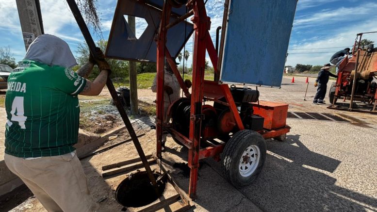 Por indicaciones del Presidente Municipal de Ahome, Antonio Menéndez de Llano, JAPAMA lleva a cabo trabajos profundos de mantenimiento en distintas líneas de alcantarillado del municipio, mediante el uso de malacates.